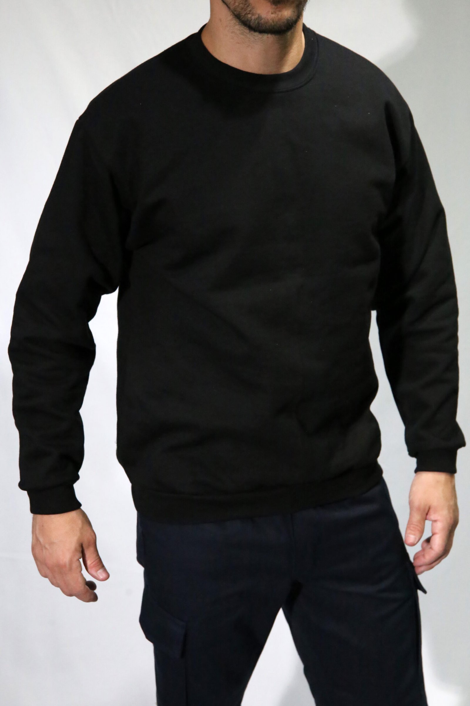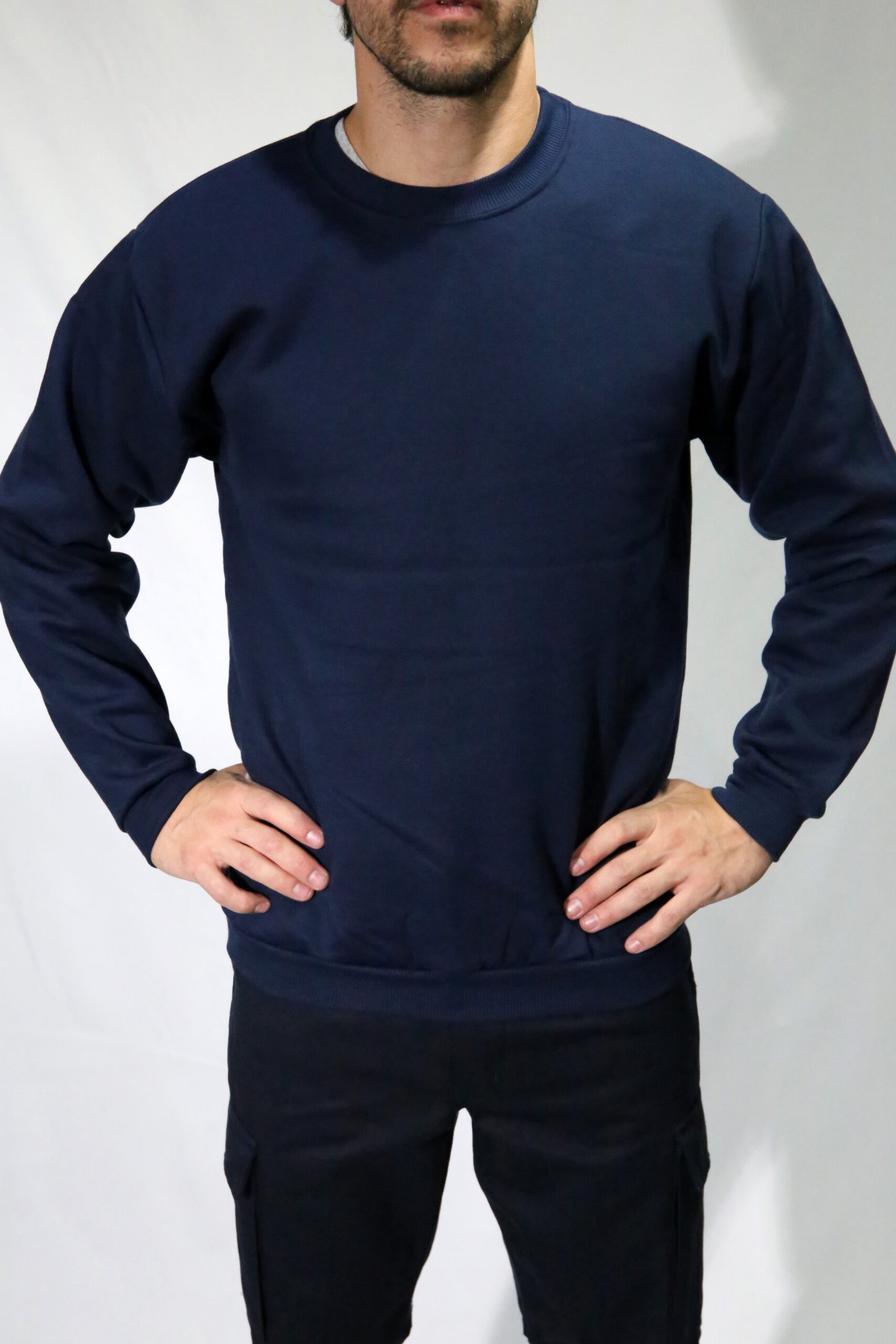 Buzo de frisa (algodón/poliéster) peinada. Cuello redondo. Morley en puños y cintura.