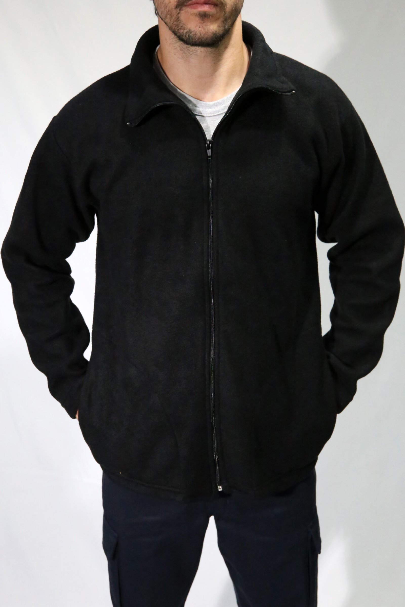 Campera de polar soft cuello alto con 2 bolsillos delanteros.