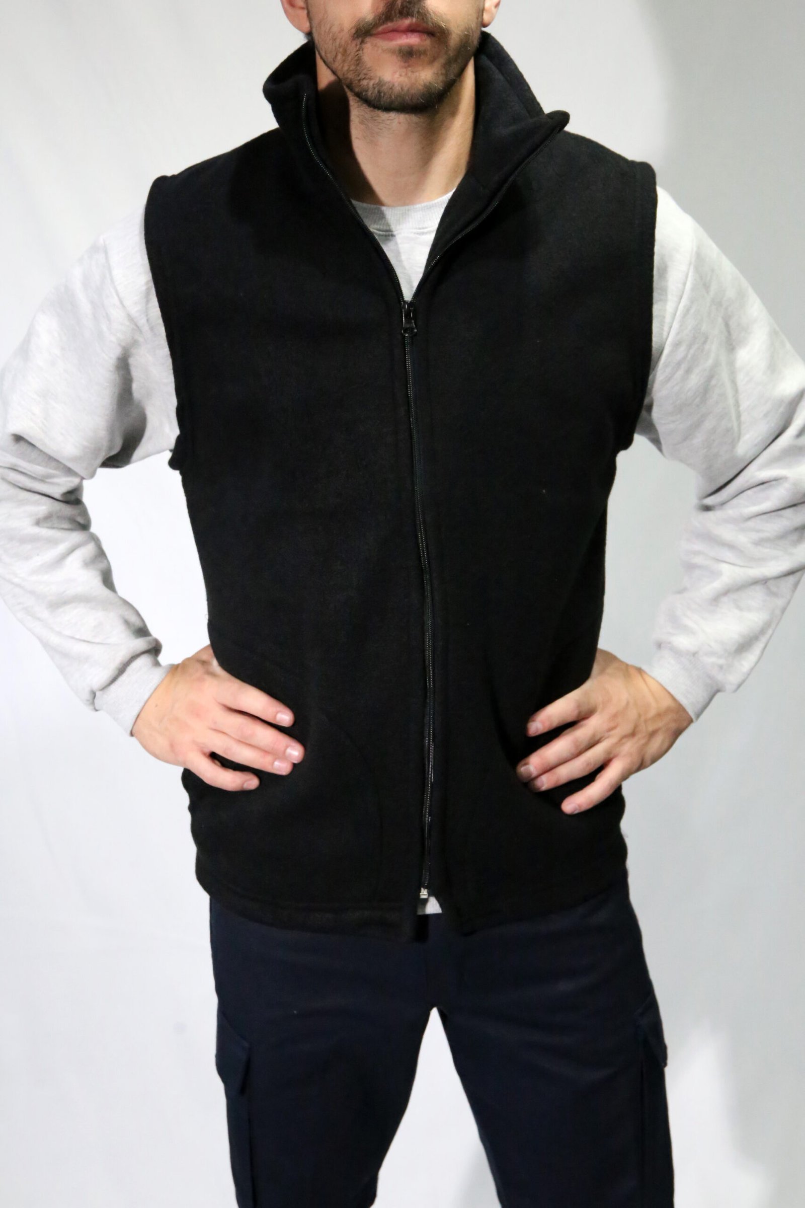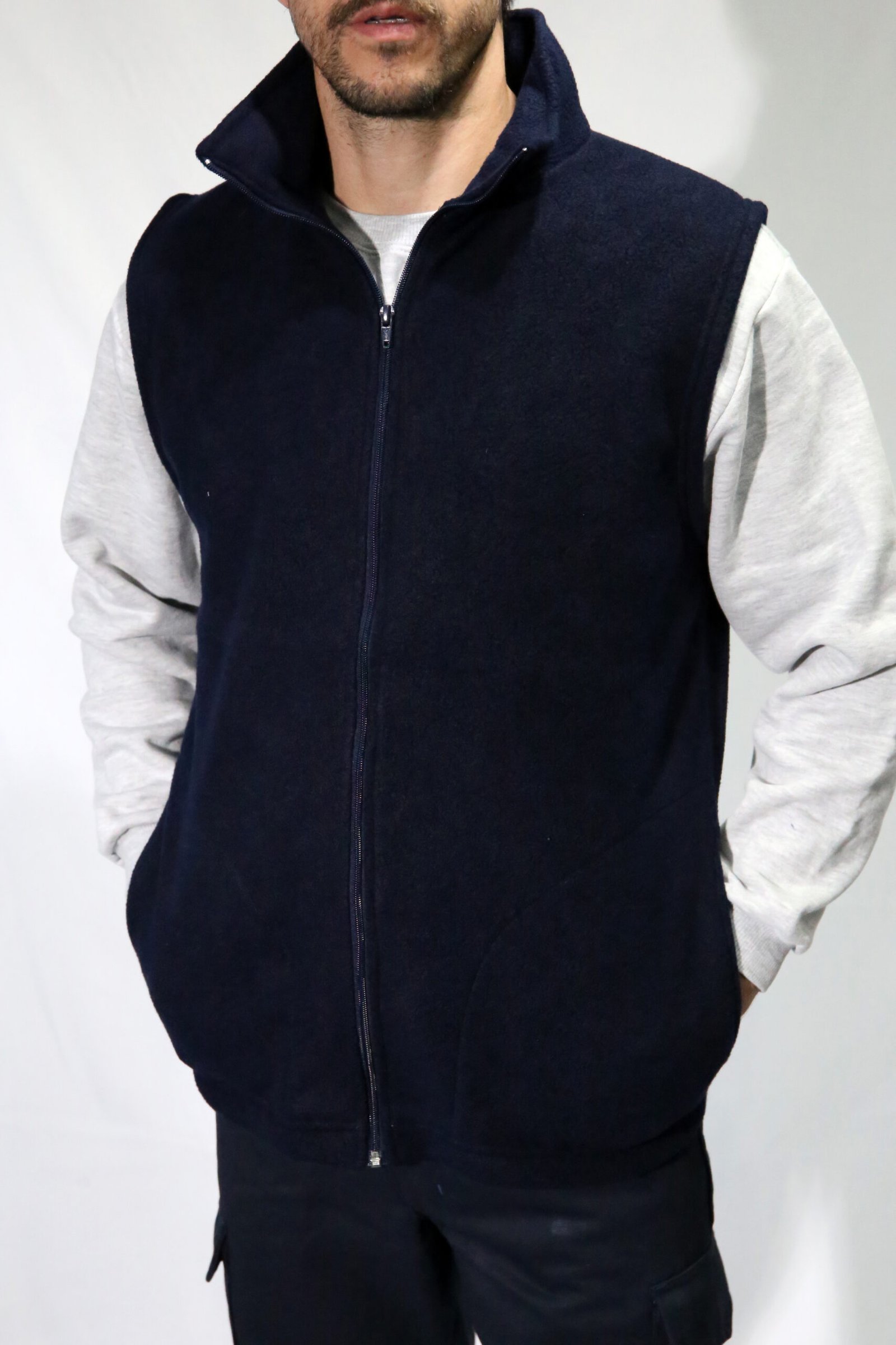 Chaleco de polar soft con cuello alto, 2 bolsillos delanteros.