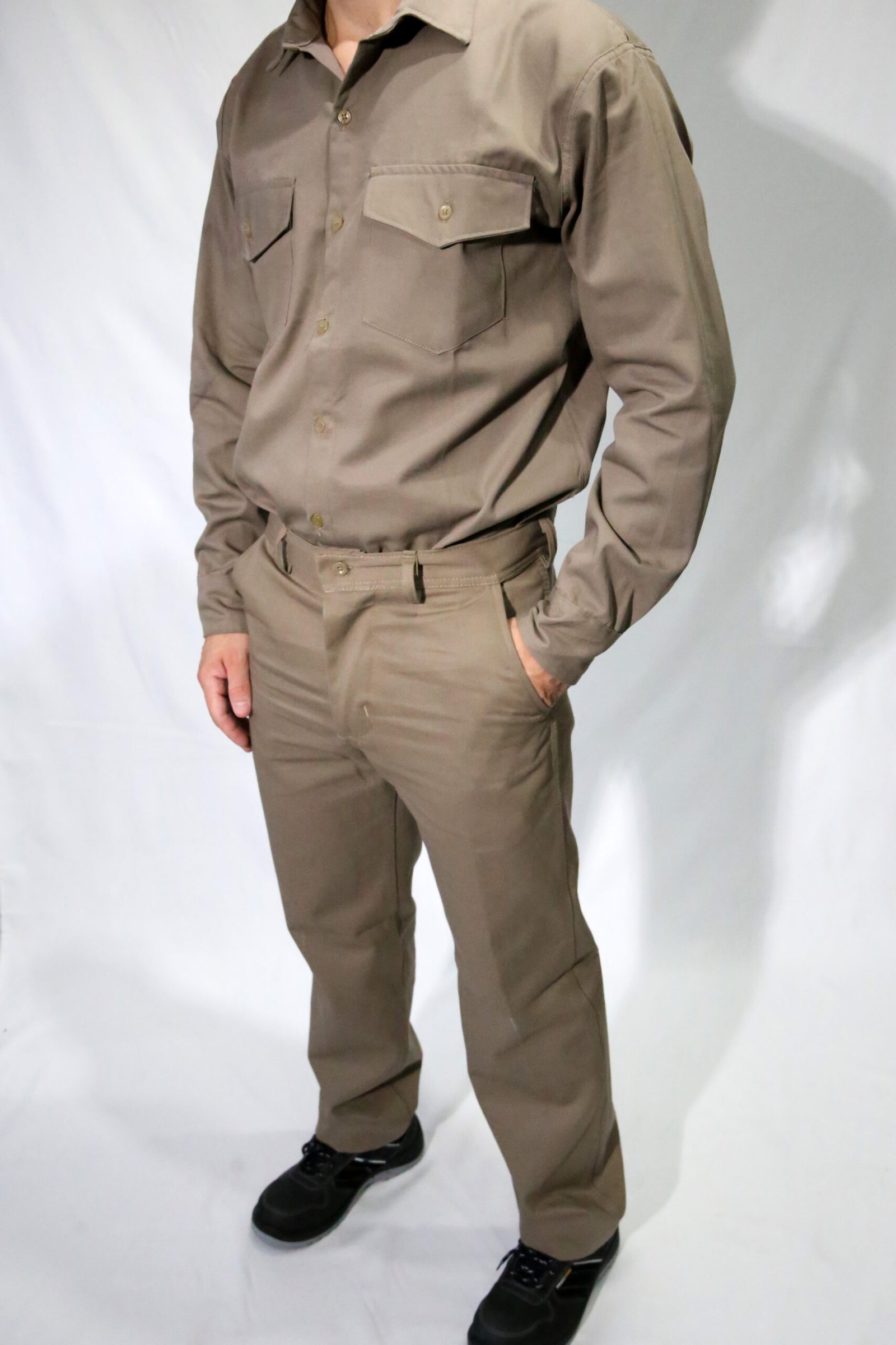 Pantalón de gabardina de 8 onzas con proceso sanforizado, 4 bolsillos, confeccionado con triple costura y reforzado con atraques en los puntos de mayor esfuerzo. Forreria de la misma tela.