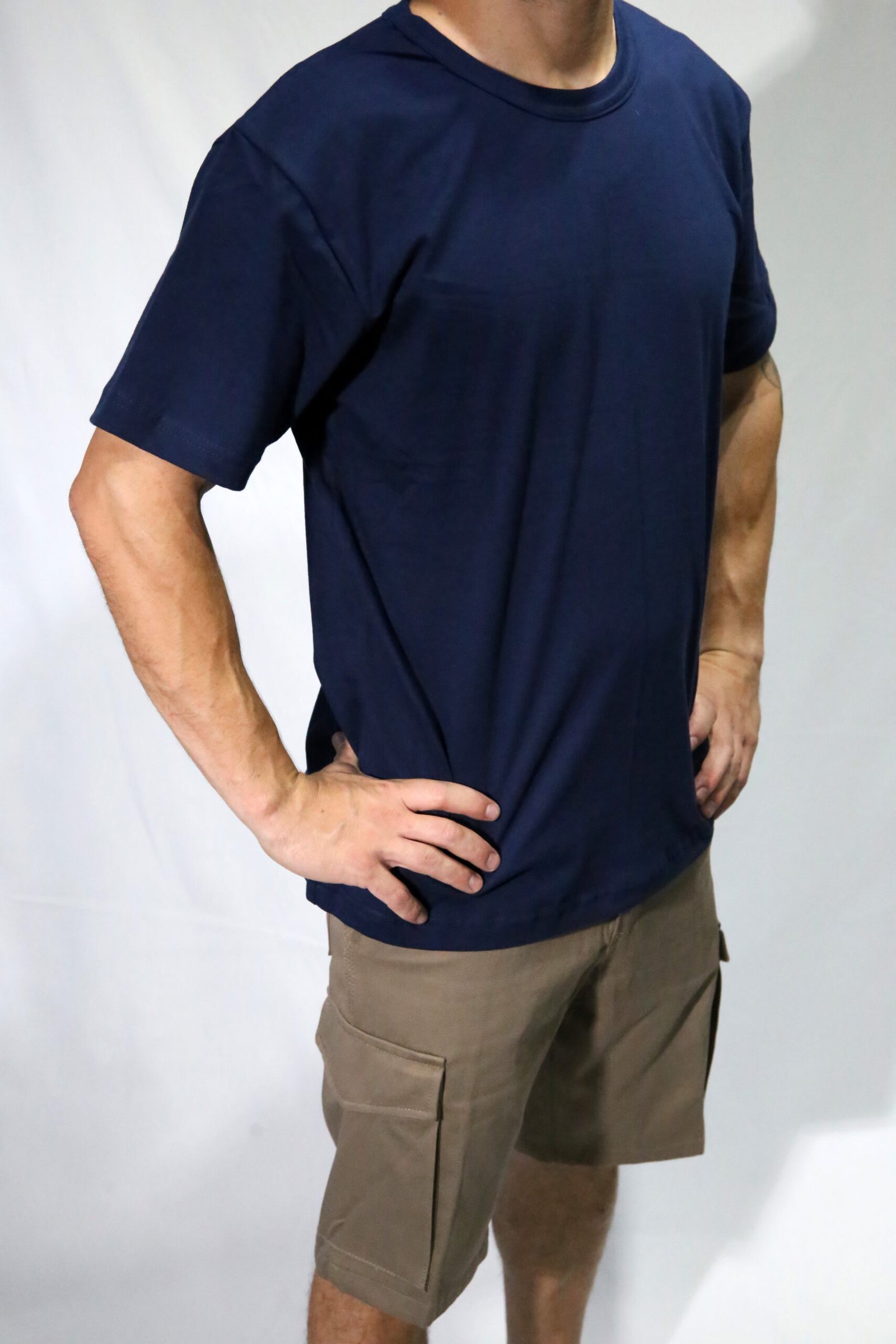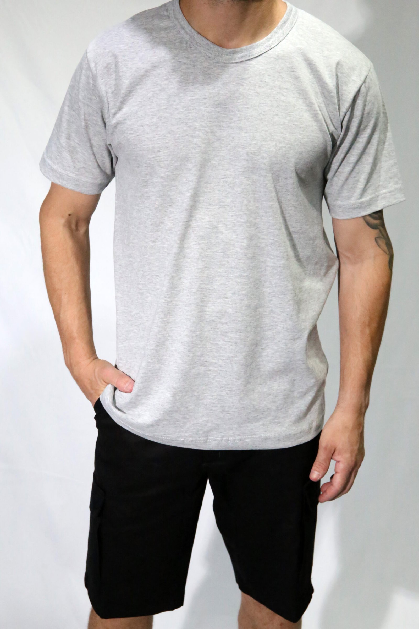 Remera mangas cortas de jersey cardado 24/1 con cuello de ribb.